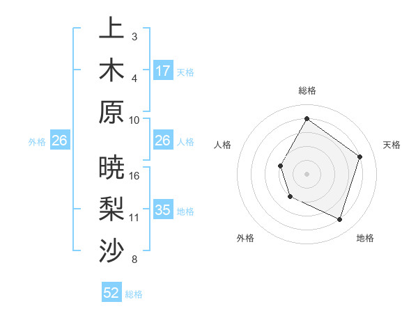 上木原 暁梨沙さんを姓名の画数から五運を鑑定