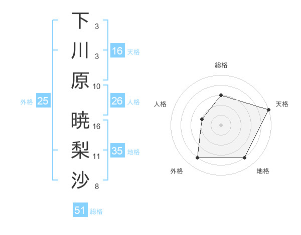 下川原 暁梨沙さんの天格は16画の5点!
