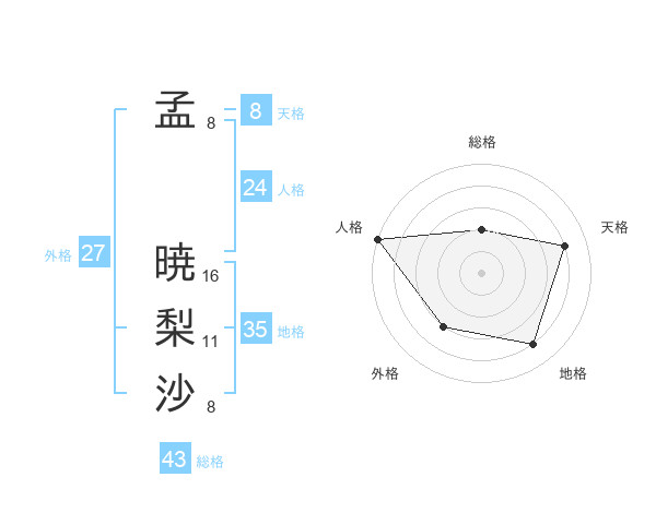 孟 暁梨沙さんを姓名の画数から五運を鑑定