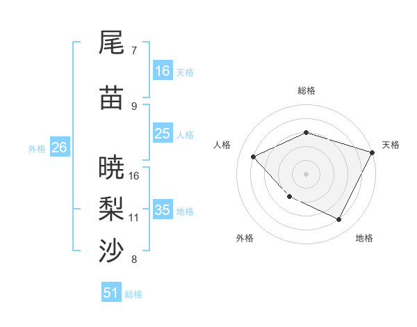 尾苗 暁梨沙さんの総格は51画の3点!