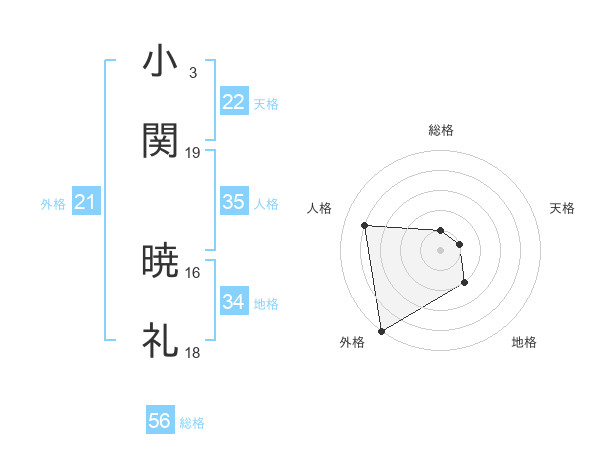 小関 暁礼さんを姓名の画数から五運を鑑定