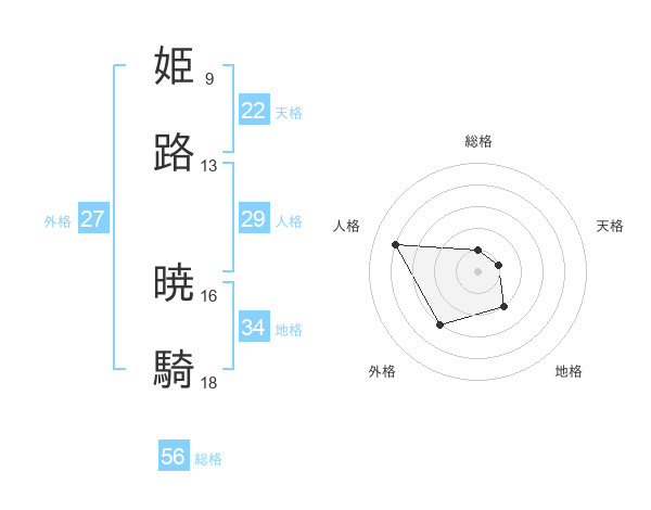 姫路 暁騎さんを姓名の画数から五運を鑑定