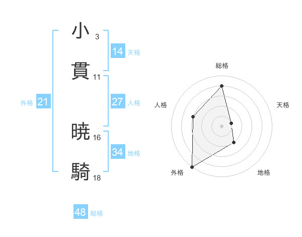 小貫 暁騎さんの総格は48画の4点!