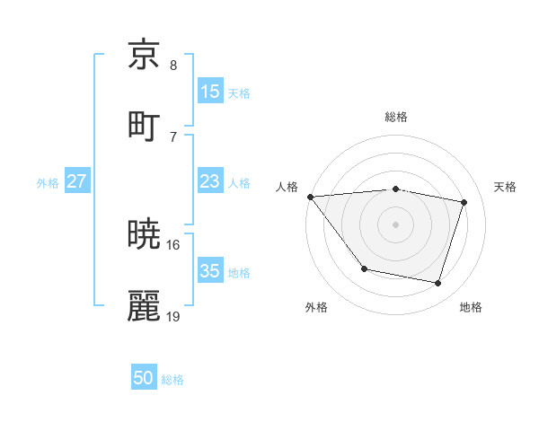 京町 暁麗さんの天格は15画の4点!