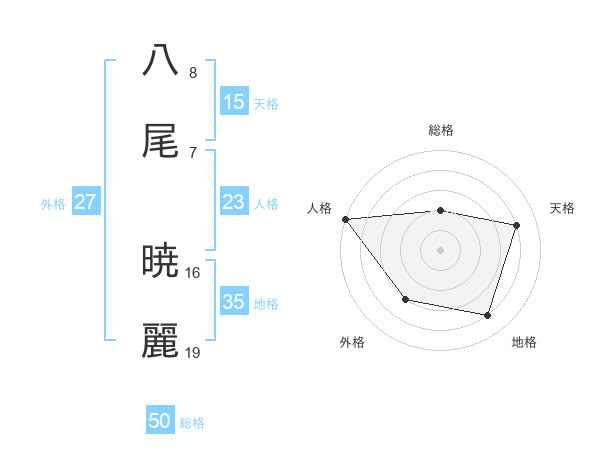 八尾 暁麗さんの総格は50画の2点!