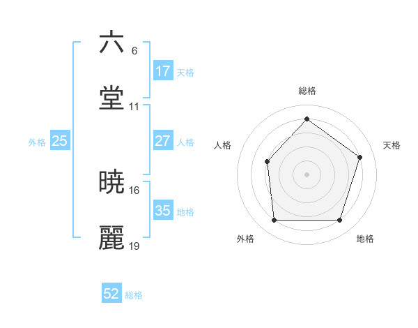 六堂 暁麗さんを姓名の画数から五運を鑑定