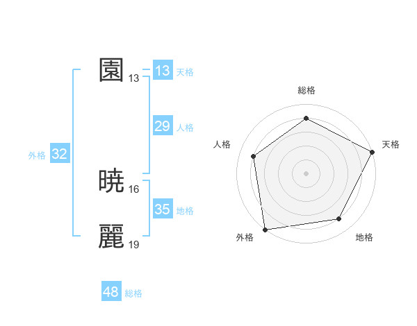 園 暁麗さんの外格は32画の5点!