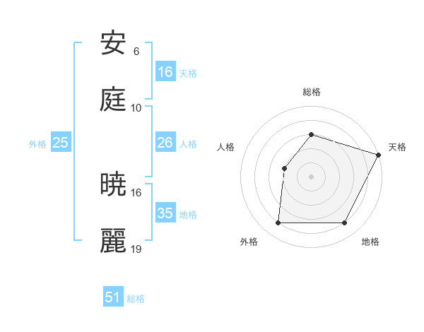 安庭 暁麗さんを姓名の画数から五運を鑑定