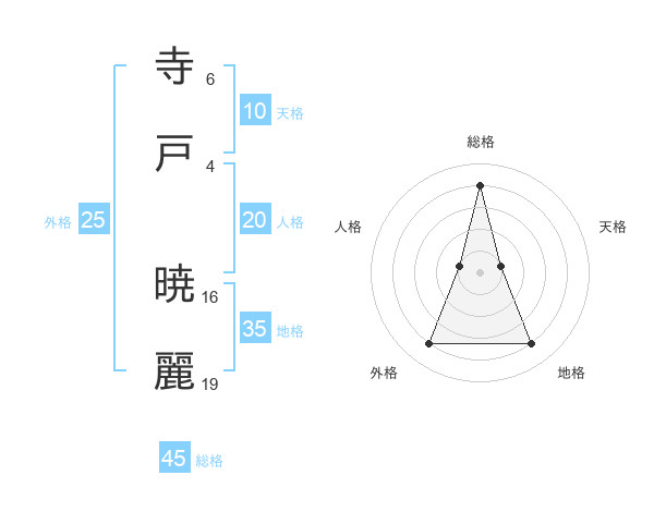 寺戸 暁麗さんの総格は45画の4点!