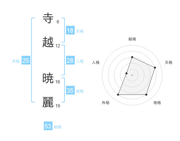 寺越 暁麗さんの総格は53画の3点!