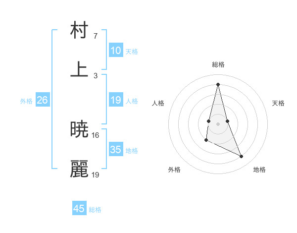 村上 暁麗さんの総格は45画の4点!