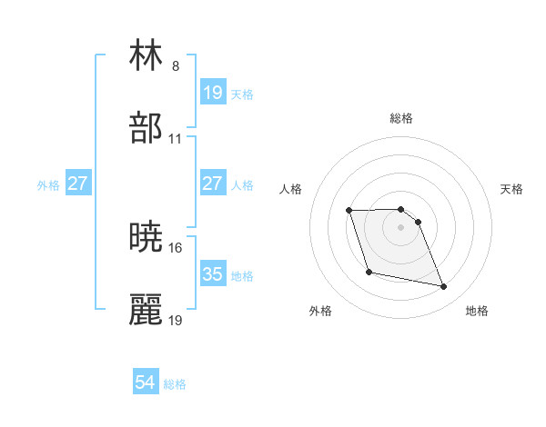 林部 暁麗さんを姓名の画数から五運を鑑定
