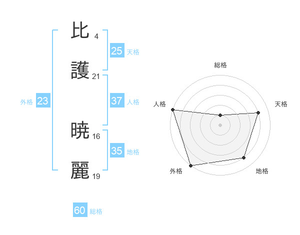 比護 暁麗さんの総格は60画の1点!