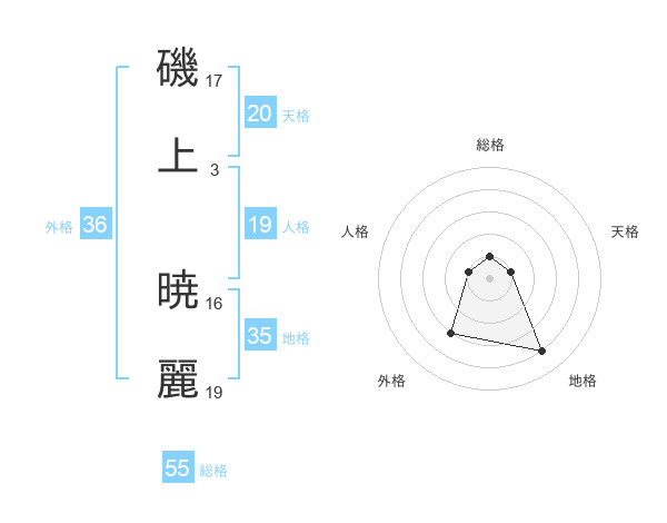 磯上 暁麗さんの天格は20画の1点!