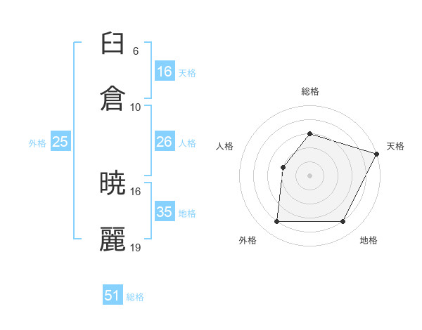 臼倉 暁麗さんを姓名の画数から五運を鑑定