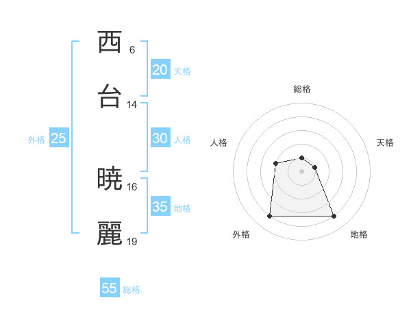 西台 暁麗さんを姓名の画数から五運を鑑定