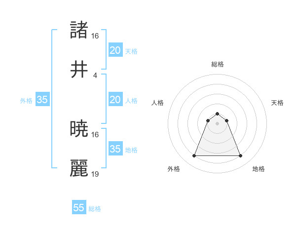 諸井 暁麗さんを姓名の画数から五運を鑑定