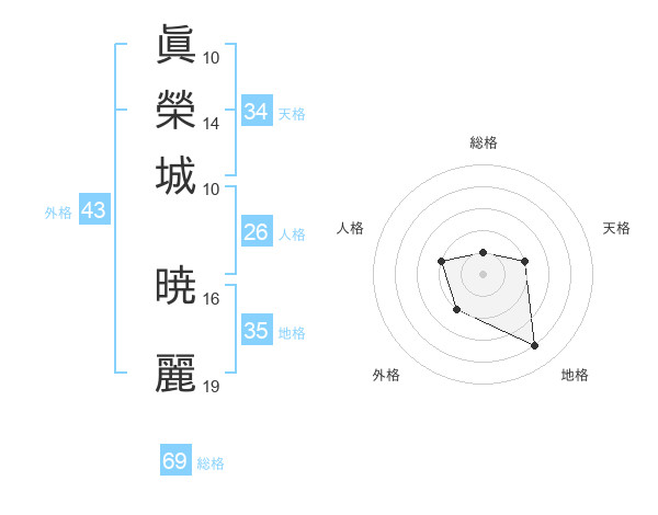 眞榮城 暁麗さんの総格は69画の1点!