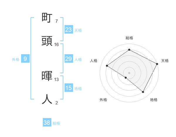 町頭 暉人さんの総格は38画の4点!