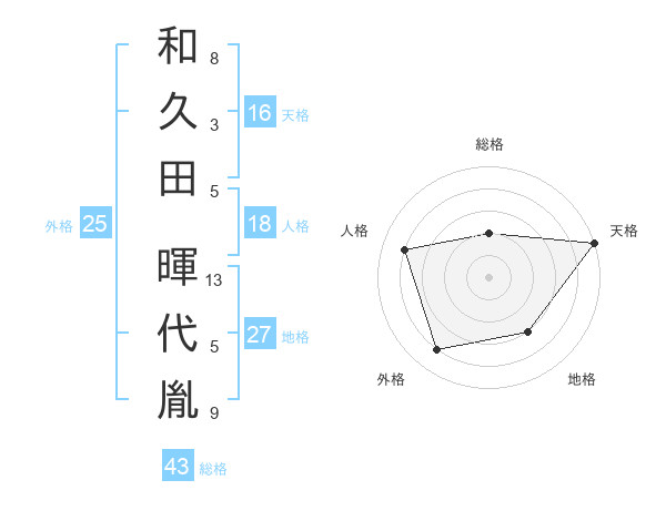 和久田 暉代胤さんの天格は16画の5点!