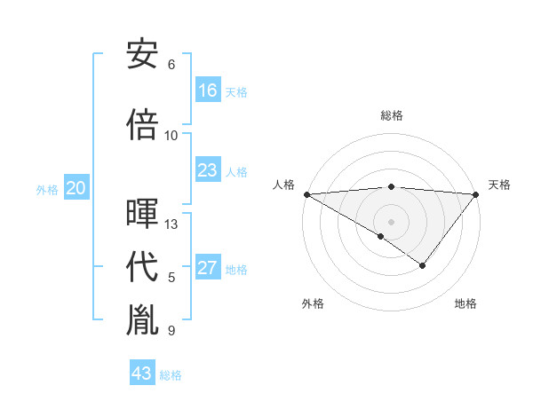 安倍 暉代胤さんを姓名の画数から五運を鑑定