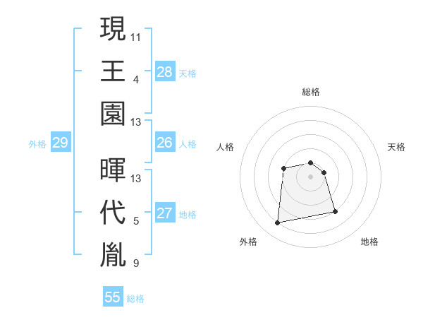 現王園 暉代胤さんの地格は27画の3点!