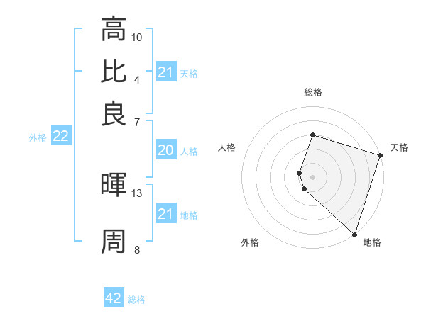 高比良 暉周さんを姓名の画数から五運を鑑定