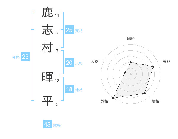 鹿志村 暉平さんを姓名の画数から五運を鑑定
