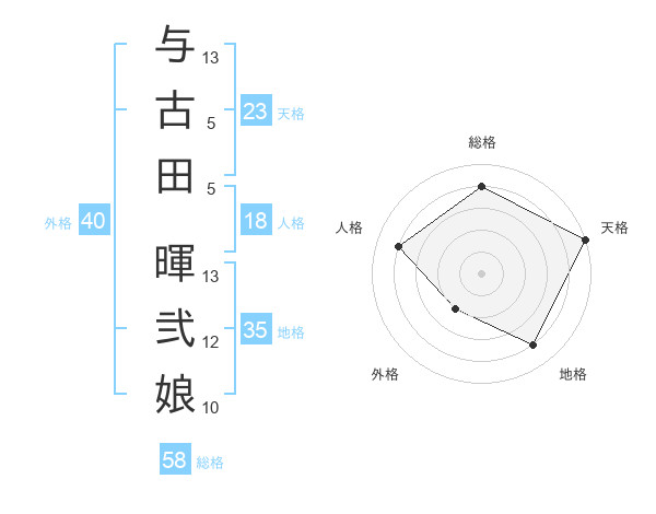 与古田 暉弐娘さんの天格は23画の5点