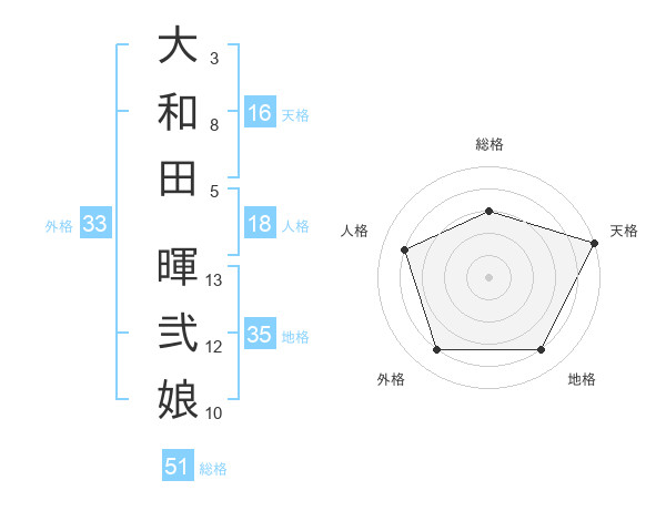 大和田 暉弐娘さんを姓名の画数から五運を鑑定