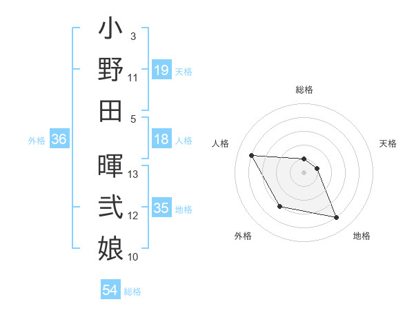 小野田 暉弐娘さんを姓名の画数から五運を鑑定