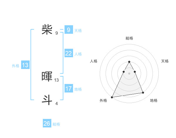 柴 暉斗さんを姓名の画数から五運を鑑定