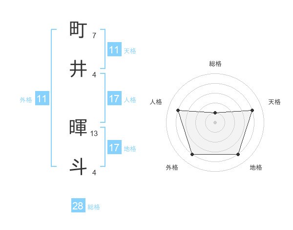 町井 暉斗さんの地格は17画の4点!