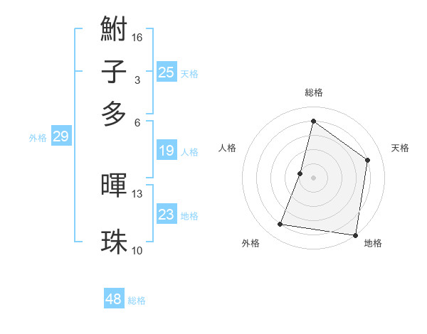 鮒子多 暉珠さんを姓名の画数から五運を鑑定
