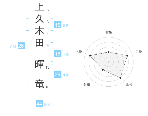 上久木田 暉竜さんを姓名の画数から五運を鑑定