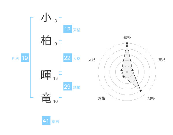 小柏 暉竜さんの総格は41画の5点!