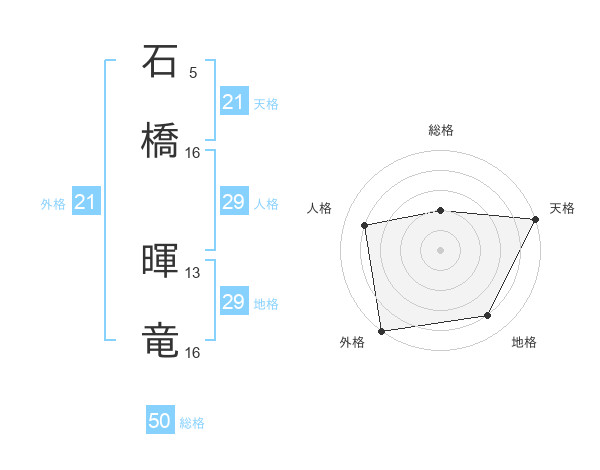 石橋 暉竜さんを姓名の画数から五運を鑑定