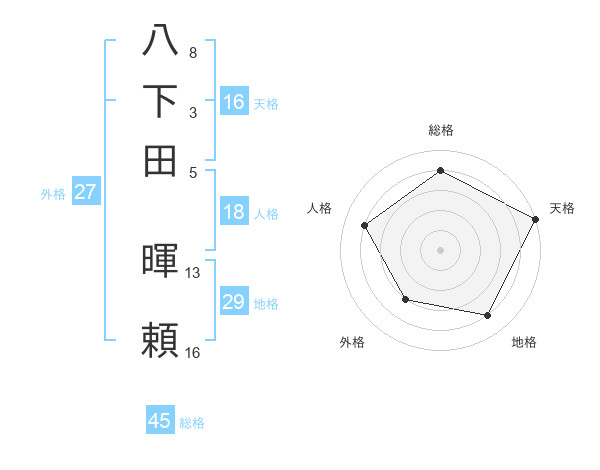八下田 暉頼さんを姓名の画数から五運を鑑定