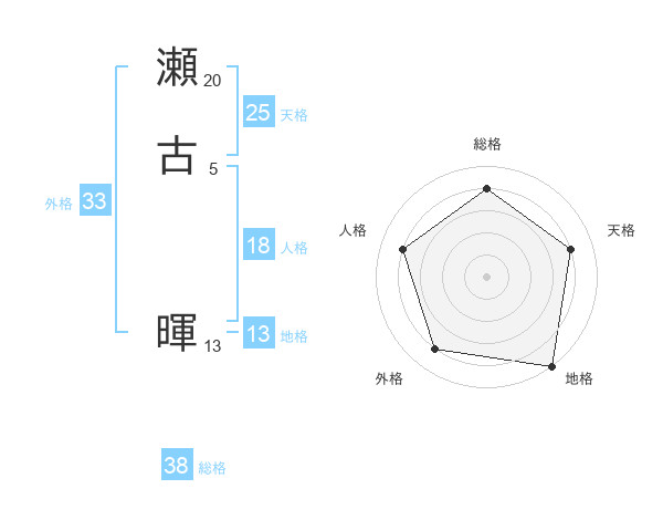 瀬古 暉さんの総格は38画の4点!
