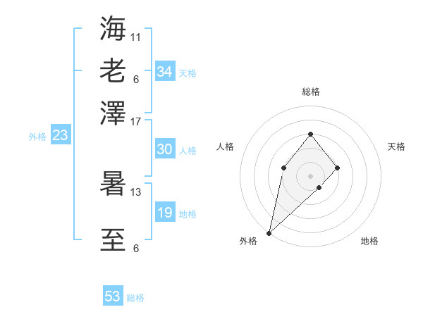 海老澤 暑至さんを姓名の画数から五運を鑑定