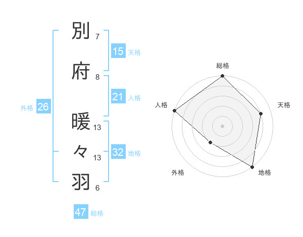 別府 暖々羽さんを姓名の画数から五運を鑑定