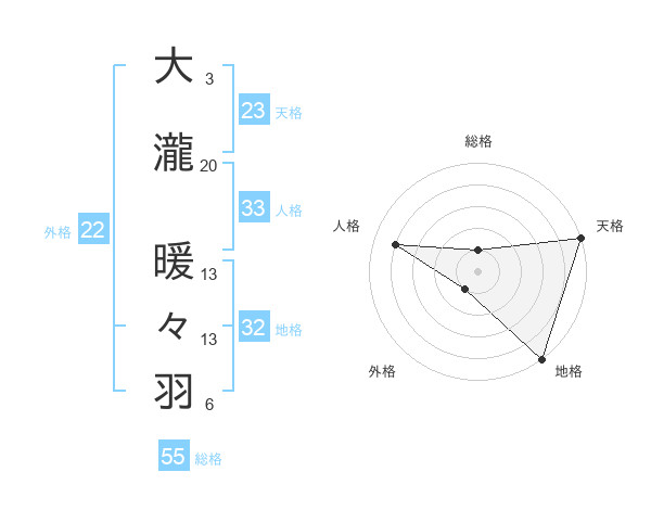 大瀧 暖々羽さんを姓名の画数から五運を鑑定