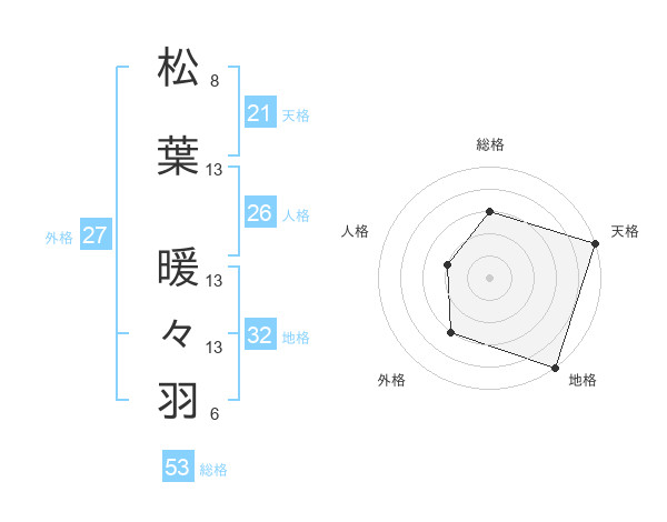 松葉 暖々羽さんを姓名の画数から五運を鑑定