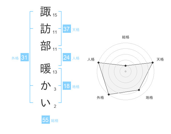 諏訪部 暖かいさんの外格は31画の5点!