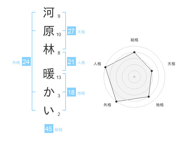 河原林 暖かいさんを姓名の画数から五運を鑑定