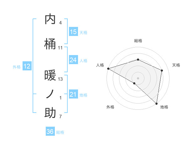 内桶 暖ノ助さんを姓名の画数から五運を鑑定