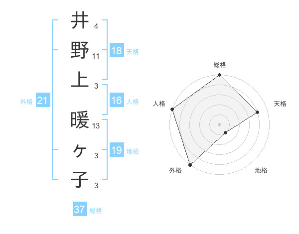 井野上 暖ヶ子さんを姓名の画数から五運を鑑定