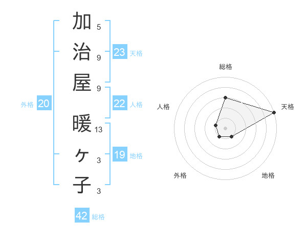 加治屋 暖ヶ子さんの天格は23画の5点