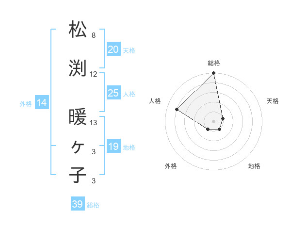 松渕 暖ヶ子さんを姓名の画数から五運を鑑定