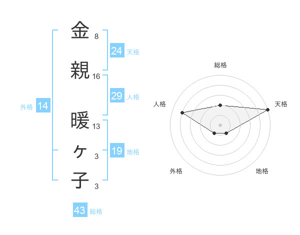 金親 暖ヶ子さんを姓名の画数から五運を鑑定